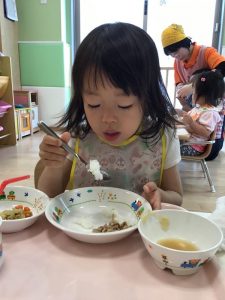 おかわりをもっていくと、もっと食べたい〜と保育者へ伝えてくれます?