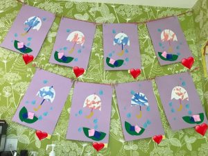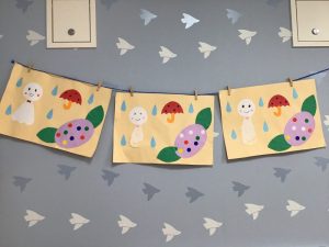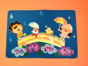 みんなの足型でとっても可愛いてるてる坊主さんが完成しました!