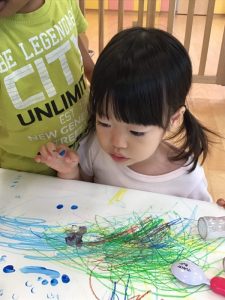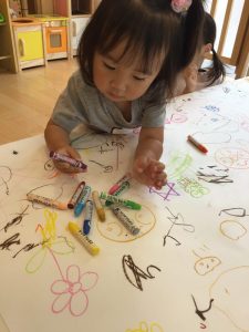 紙いっぱいにお絵かきをしていてとても楽しそうです!