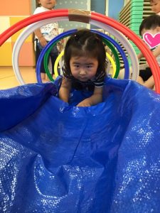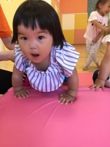マットで作ったお山を登ったり、横に寝転がってごろごろ〜と転がりました?