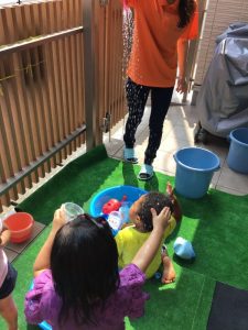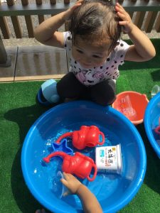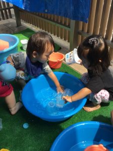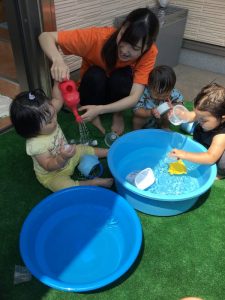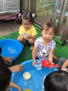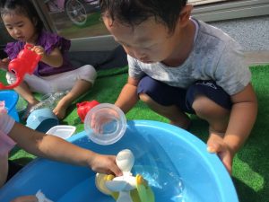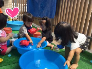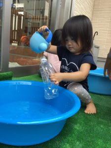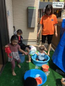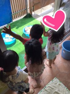 さて、今週はしばらくお休みしていた水遊びを始まり子ども達は大興奮?