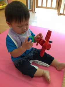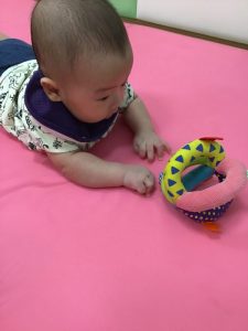 おもちゃに手を伸ばし音が鳴るのが楽しいな〜✨