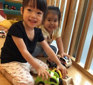 水遊びが終わる頃には”もっと遊びたいよ〜”と寂しそうな子ども達ですが、室内に入ると室内遊びに一直線?!