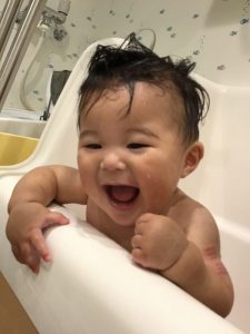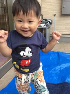 いざ水遊びになると…やったー?と水を自分でかけたり上から雨のように降らしたり☔️