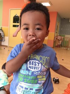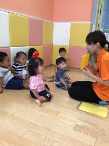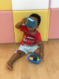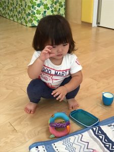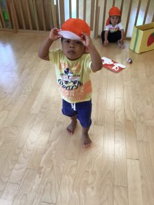 ?1歳児はお話が上手になり、保育士を「しぇんしぇ〜!」と呼んでくれてとっても可愛いです❤️帽子を自分で被ったり、靴下や靴を頑張って履こうとしている姿も見られ、トイレにも興味を持ち自分から便器に座ろうとしている子もいます?