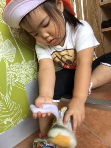 靴もマジックテープを止めて…よいしょっ!履けたよ?