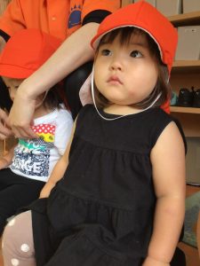 お外は暑いから、きちんと帽子をかぶってお散歩に行くよ〜?