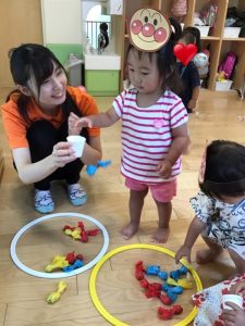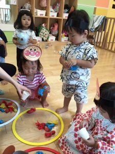 もも組は金魚すくい、いちご組はヨーヨーつり、りんご組はかき氷?