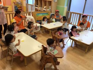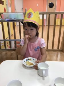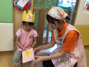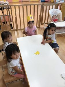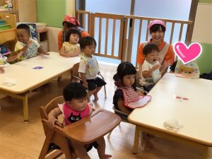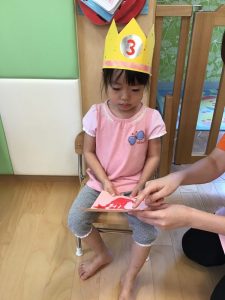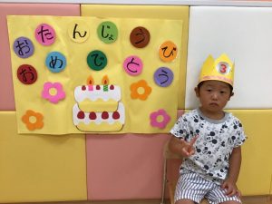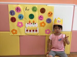 楽しい誕生日会に誕生児の子も嬉しかったようで、保護者様がお迎えに来られた時に「誕生日会やったよ?」と嬉しそうに報告をしていて先生達も嬉しい気持ちになりました??