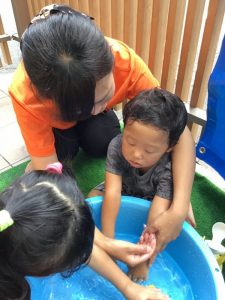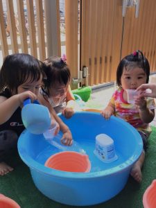 子ども達も今日で終わるプール遊びを〝今日で終わりなの!?〝と少し寂しそうな様子でしたが、最後のプール遊びを思いっきり楽しんでいましたよ?