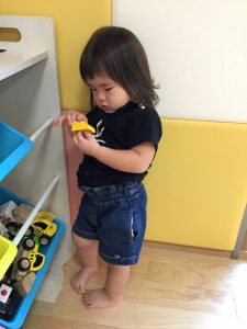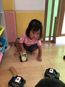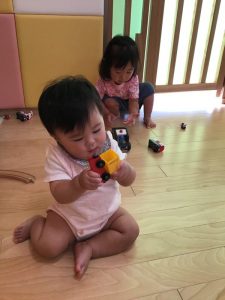 いちご組さん?は、おままごとやブロック、車の玩具で遊ぶのに夢中になっています?