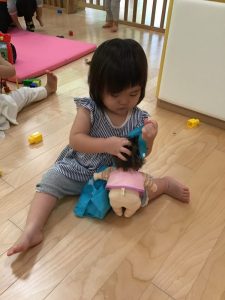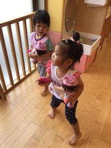 りんご組さん?は、皆で集まり、お人形遊びをしたり絵本を読み聞かせ合ったりしています?お友達同士の会話がとても可愛いです?☺️