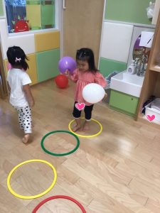風船もフラフープも楽しいからどっちもやりたい!!