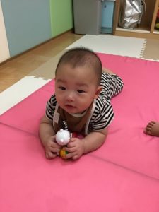 もも組さん?は、ゴロ〜ンとマットの上で寝返りしたり上手につかまり立ちしたり、歩くのが上手なお友達もいます♪月齢によって動き方がそれぞれ違うもも組さんに毎日成長を感じています✨!