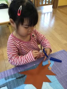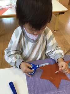 何回か折り紙を切るとすぐにコツを掴みどんどん切ることができています✨