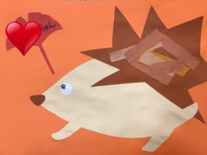 今回の製作では、ハリネズミの針を細い折り紙に見立てて切って作ってもらいました?