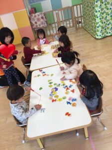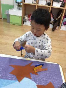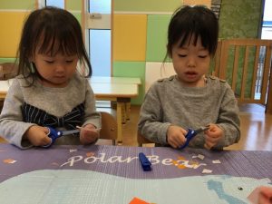ハサミを使う前には、お友達に刃は向けませんなどお約束を話すと、真剣に聞いて「はーい!」と元気よくお返事してくれました✨