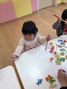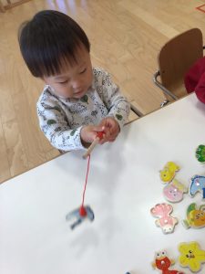 手を一生懸命伸ばして釣ろうとする姿がとてもかわいいですね❤️