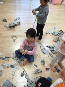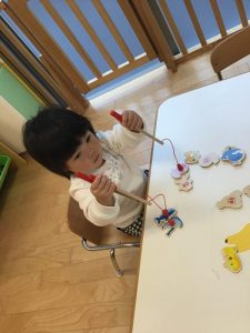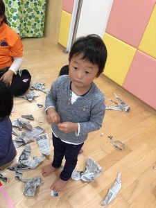 他にも室内では新聞紙遊びやパズル、魚釣り、さまざまな遊びで楽しんでいます?