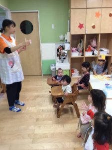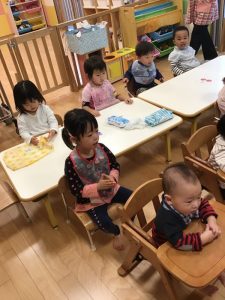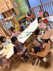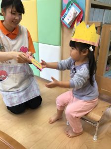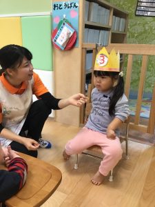 手を叩いて大きな声で歌い、みんなでお友達をお祝いすることができました?