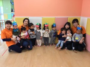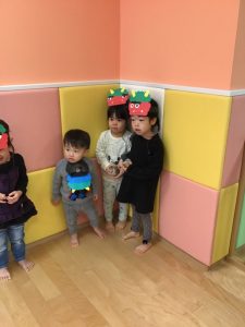 びっくりして泣き出してしまう子もいましたが、勇気を振り絞って「鬼はそと!福はうち!」とみんなで力を合わせてオニを外に追いやることができました?✨
