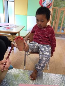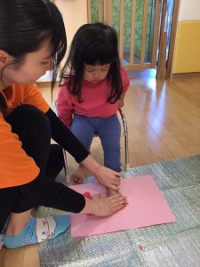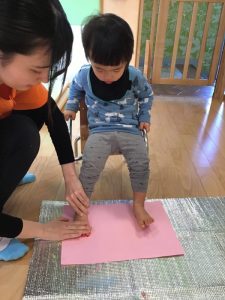 画用紙にペタン!ギュッギュッ〜!素敵な足型ができました♪