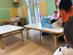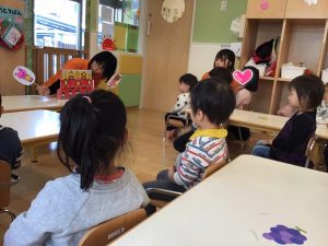お次は、ひな祭りのペープサートを先生が見せてくれました?
