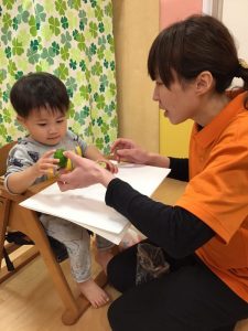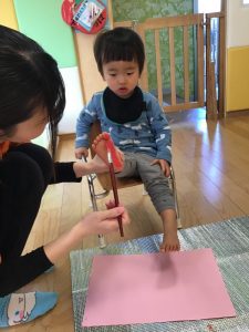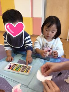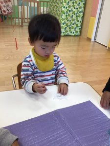 お次は0、1歳児クラスの製作のご様子をお伝えしたいと思います!