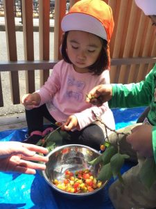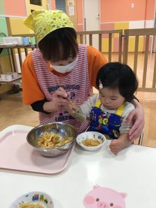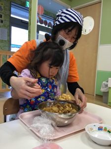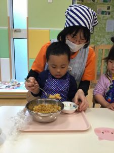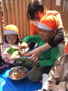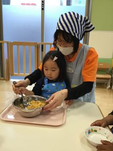 園では食育の活動を通して、子ども達が楽しみながら食に興味を持てるように取り組んでいます。
