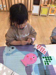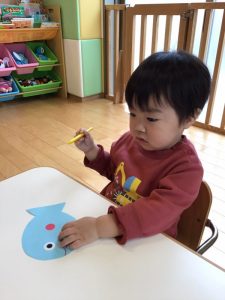 お魚さんに模様をお絵描きしてるよ✏️