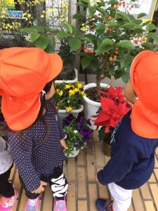 保育園の周りのお散歩コースを歩きお花を眺めていると、、