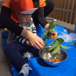 保育園に戻ってからは、先生と一緒にさくらんぼ摘みをしました?