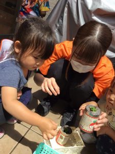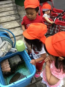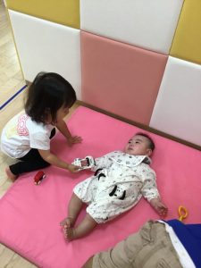 何日か通うとはじめは驚いていた子どもたちですが、だんだんと慣れて覗き込んだり、話しかけたりするようになりました!