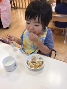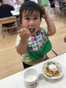 お誕生日会の後はみんなでおやつの本物のケーキを食べてお祝いしました?