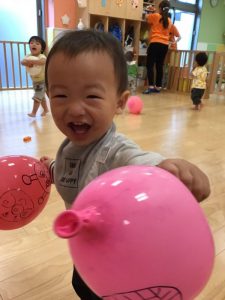 いちご組さんは音の鳴る玩具やブロック、風船遊びや絵本が大好きです❤️
