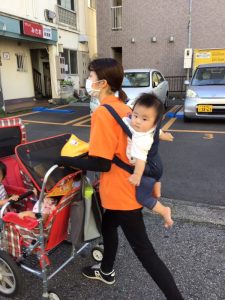 0歳児さんはおんぶをして避難していますよ??