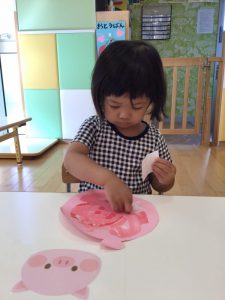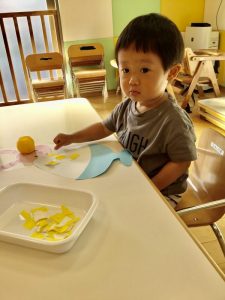 「あか!」「あお!」と色を言いながらちぎっていましたよ?
