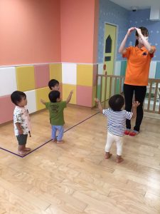 アンパンマンが大好きな子ども達は先生の真似をしながら上手に踊っていますよ?