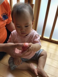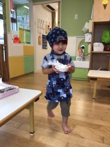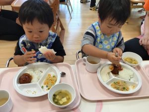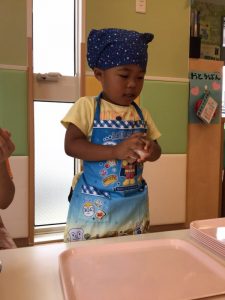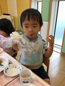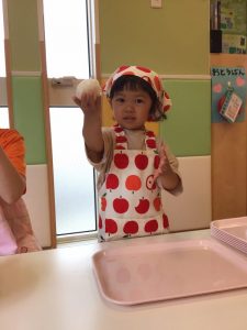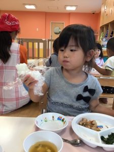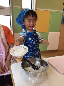 2歳児さんは食育活動でおにぎりを握りましたよ?