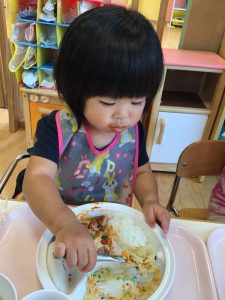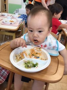 園では苦手な食べ物も一口だけ頑張って食べてみようね!などと言葉掛けしています。