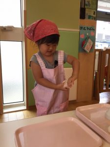 いつも「おにぎりくんがね」という絵本を読んでいるので握り方は分かっている子どもたちです!