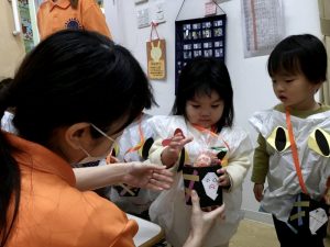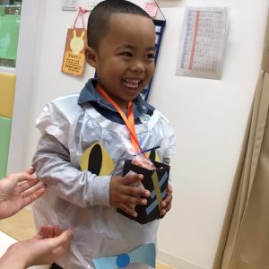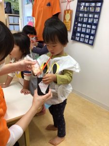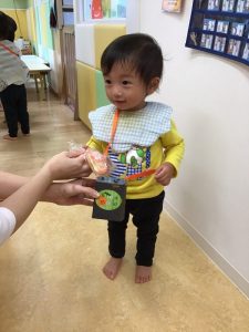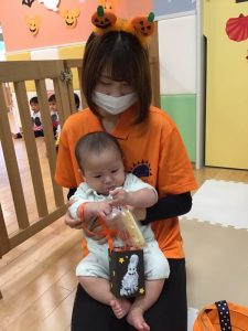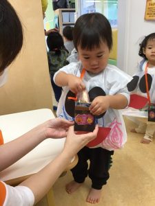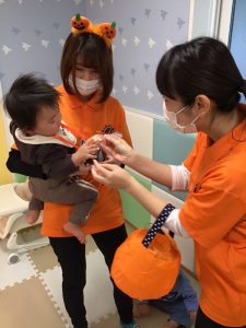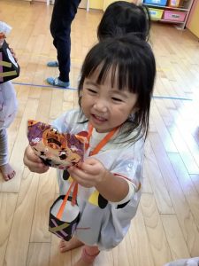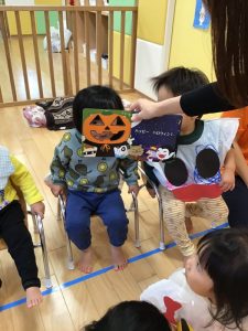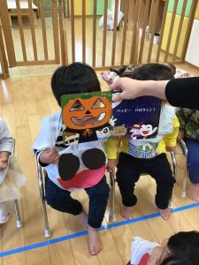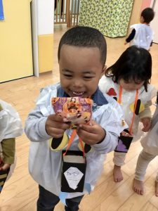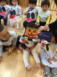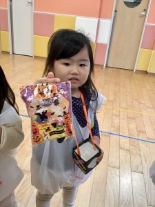 お菓子を貰いに行く時は、大きな声で「トリックオアトリート?」と言いながら園長先生と先生からお菓子を貰っていました✨