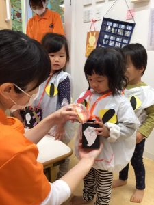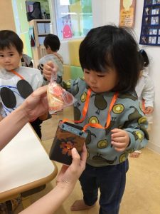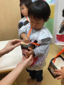 自分で作ったお菓子入れに沢山のお菓子が入り、大満足の子ども達でした??