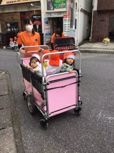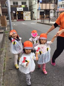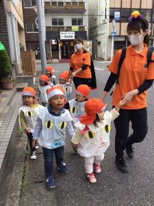 そして、可愛いおばけの仮装のまま園の周りをお散歩へ出発!!