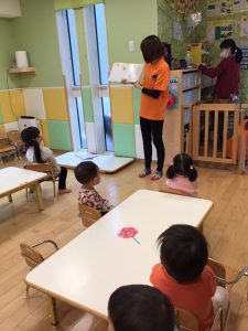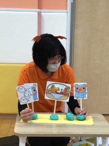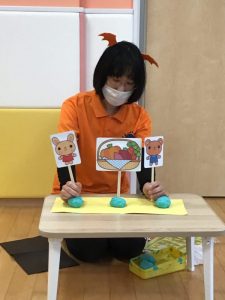 そして、次は先生によるペープサート「いたずらおばけがやってきた」です。
