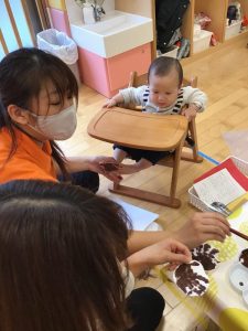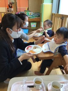 ママと一緒に食べるお給食はいつもと違って、楽しいね?