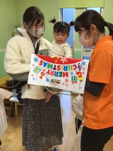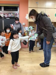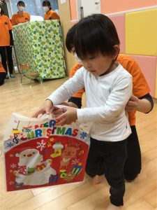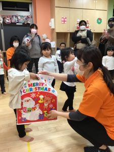 最後は、サンタさん??さんからのプレゼント?を園長先生からもらいました?