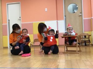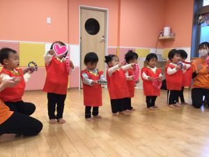 入園時は3人とっても赤ちゃんでしたが、今では楽器をしっかり持って演奏を楽しむ姿が見られるようになりました?