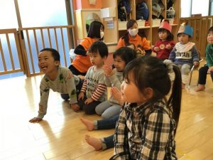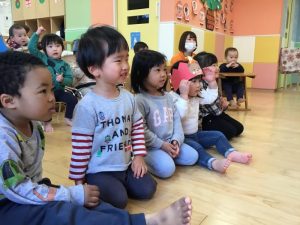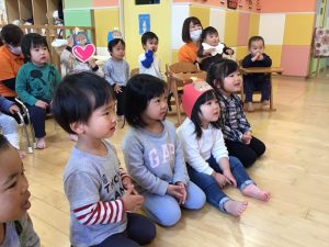 まずは、絵本「うさこちゃんの誕生日」の読み聞かせです?