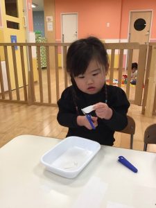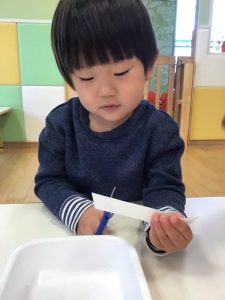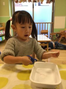 白い画用紙をハサミでチョキチョキ切ります✂️